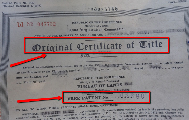 In the above title, the heading says it is an Original Certificate, meaning no prior transfer has been made. Therefore, the appropriate places to verify the authenticity of this document is the Registry of Deeds and the LRA. Further, it also says that this title was acquired through free patent, the grant of ownership from DENR - more specifically, the Bureau of Lands.